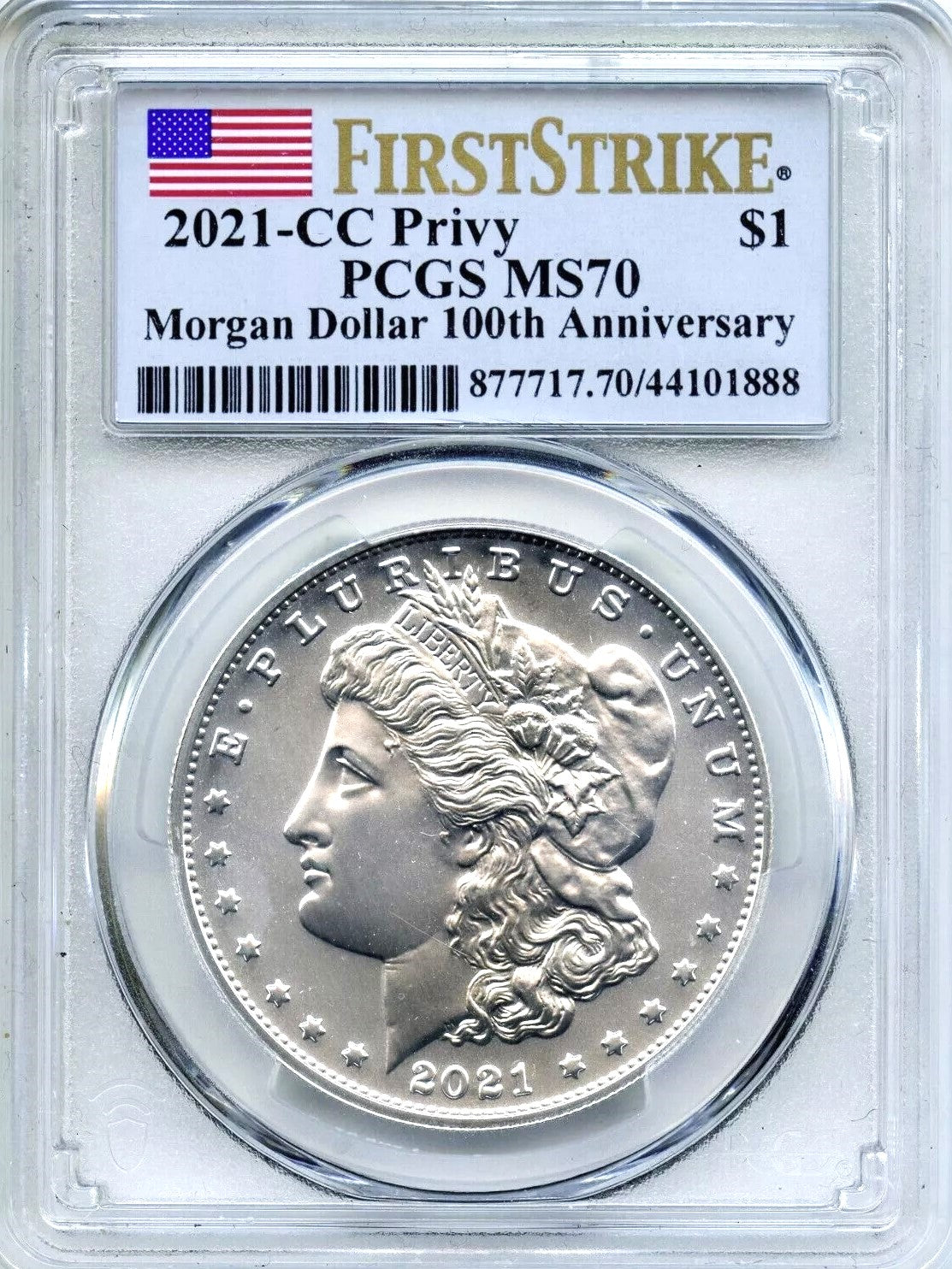 2021 CC Morgan Silver Dollar MS70 PCGS First Strike Flag Label